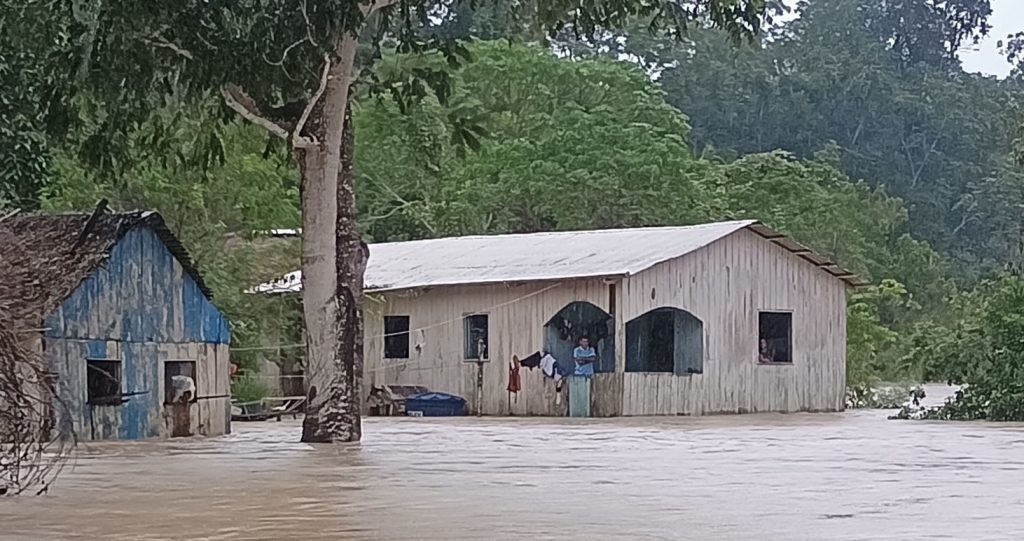 A situação mais grave é no Rio Tejo, onde mais de 100 famílias foram impactadas pela cheia e diversas comunidades sofrem com a inundação das águas e os prejuízos ocasionados pela enchente.