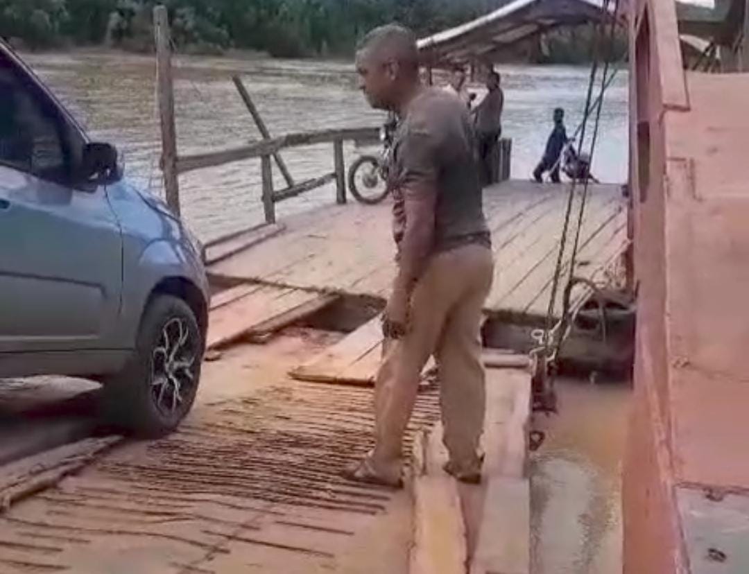 Um vídeo registrado por uma moradora de Rodrigues Alves no último fim de semana, mostra um motorista embarcando em uma ‘balsinha’ no meio do Rio Juruá, por meio da rampa de acesso. A motivação seria a quebra da balsa maior, problema que é recorrente no município.