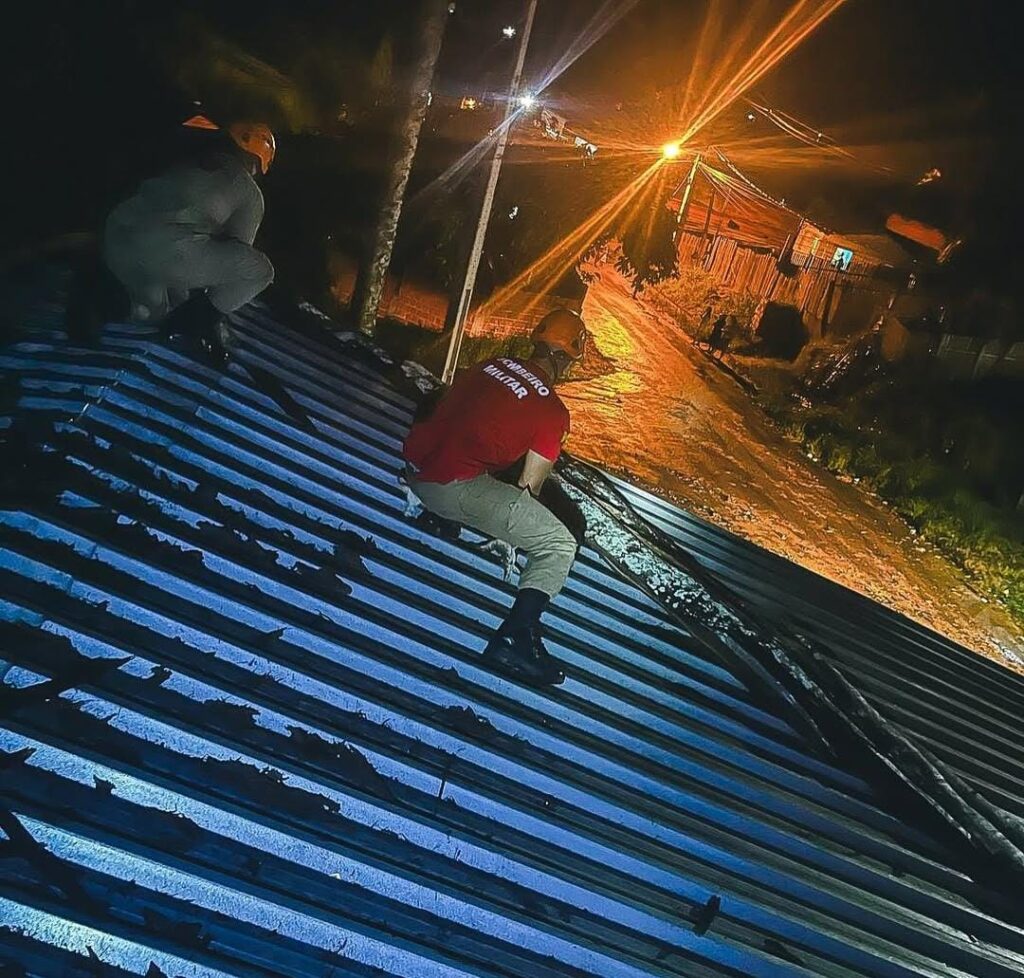 Na noite desta quarta-feira, 05, uma equipe do Corpo de Bombeiros foi acionada para retirar uma árvore que caiu em cima de uma residência, em Cruzeiro do Sul.