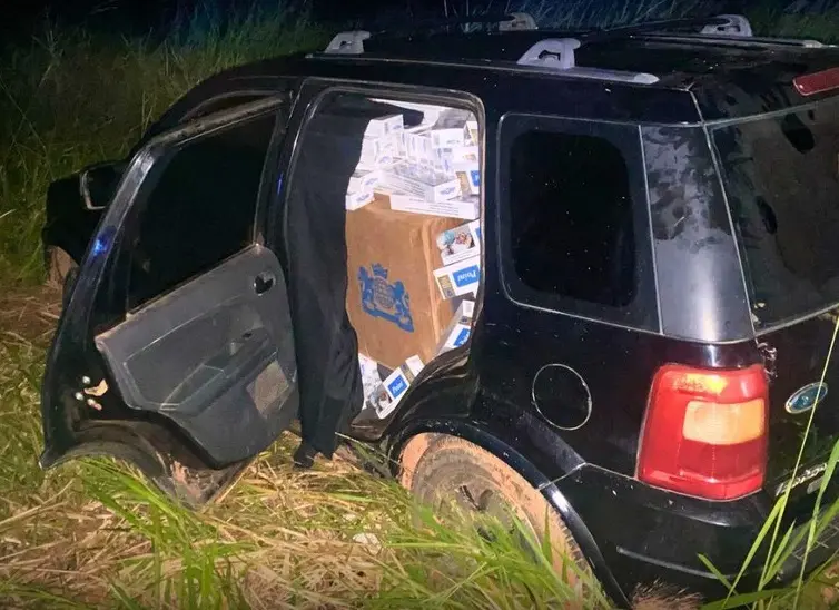 Durante a abordagem, os agentes localizaram os maços de cigarro de origem estrangeira, caracterizando o crime de contrabando. O homem foi preso em flagrante e encaminhado à Polícia Federal, onde os procedimentos cabíveis foram realizados.