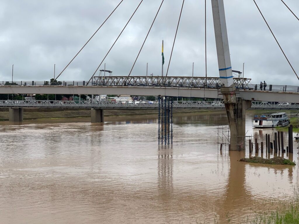 O nível do Rio Acre ultrapassou os 12 metros, às 9h desta sexta-feira (7), de acordo com a última medição da Defesa Civil Municipal.