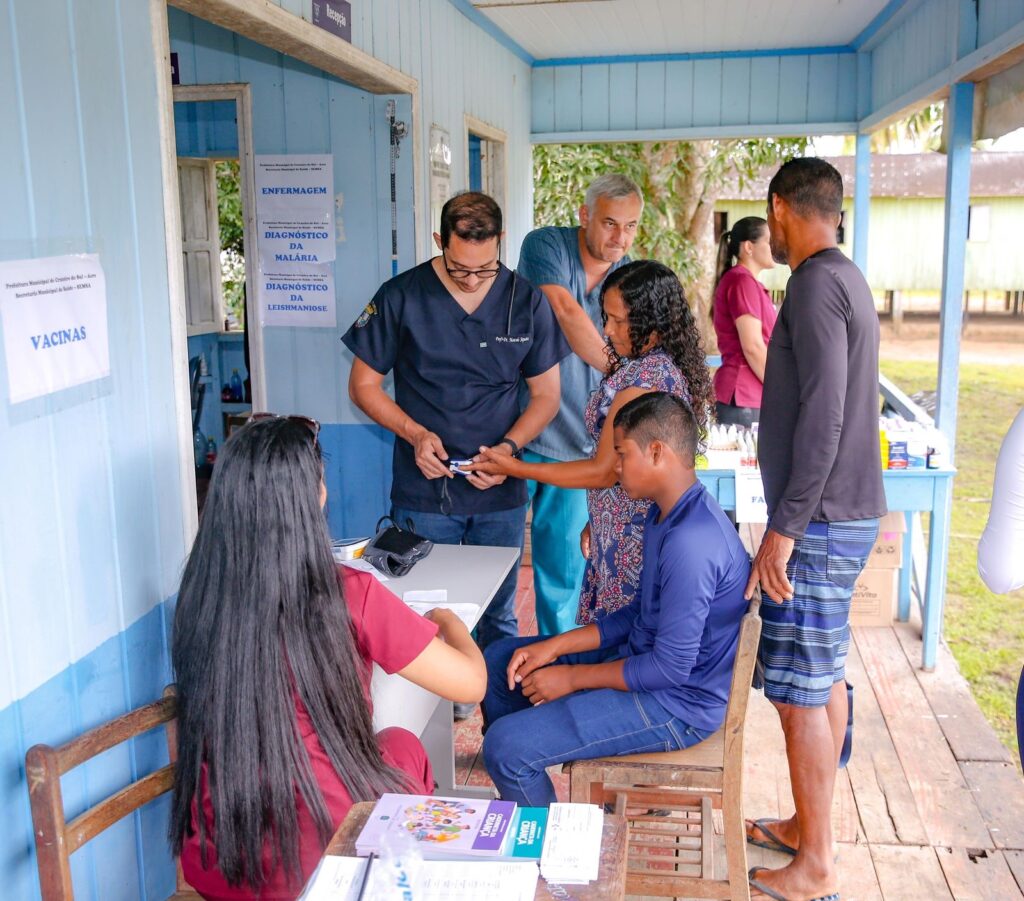 A Prefeitura de Cruzeiro do Sul, por meio da Secretaria Municipal de Saúde, realizou atendimentos itinerantes na comunidade Tartaruga, localizada no Rio Valparaíso, neste sábado, 29. A iniciativa, foi levada em uma ação integrada durante a sessão itinerante promovida pela Câmara Municipal. Entre os serviços, foram garantidos consultas médicas, atendimento odontológico, distribuição de medicamentos, vacinação e testes rápidos.