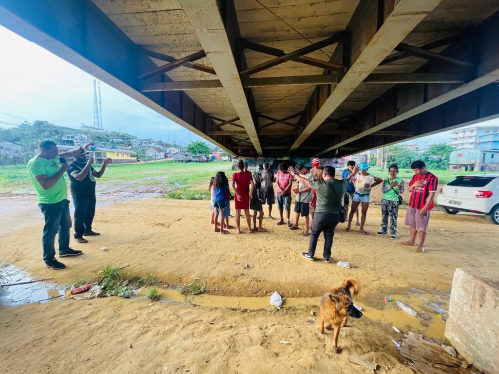 O projeto começou com encontros realizados embaixo da Ponte da União, mas, devido à recente enchente, as ações foram transferidas para a pracinha ao lado. Todas as quartas-feiras, um grupo de voluntários se reúne para evangelizar e alimentar moradores em situação de rua e famílias carentes da região. Esse gesto de fé e solidariedade está se expandindo, alcançando bairros como o da Várzea.