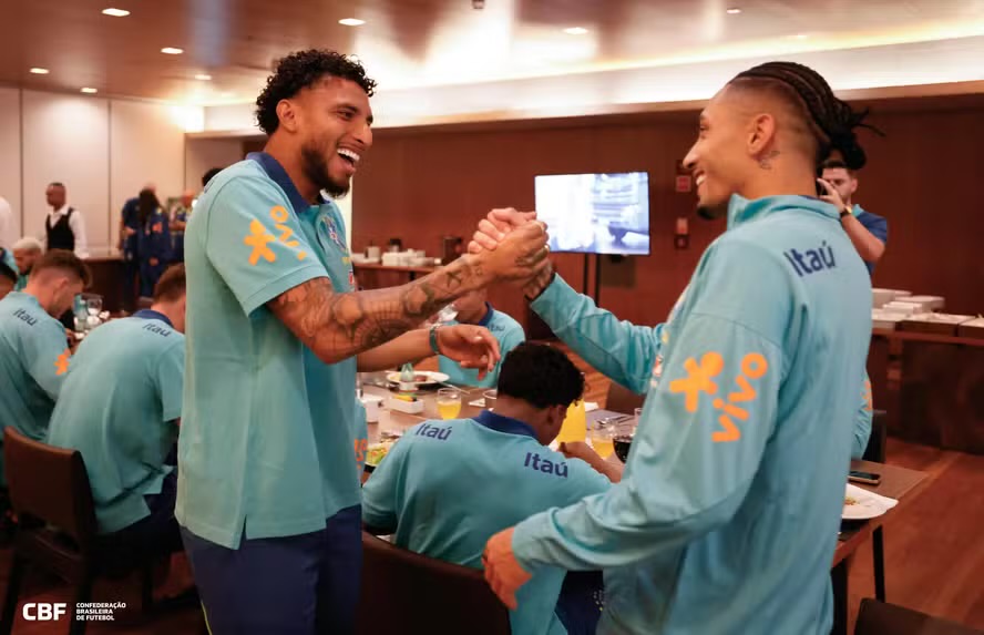 Os últimos quatro convocados para a seleção brasileira nesta data Fifa, o goleiro Weverton, o zagueiro Beraldo e os meio-campistas João Gomes e Éderson se apresentaram na manhã deste sábado, no hotel onde a delegação está concentrada, em Brasília. Eles iniciam a preparação com o restante da equipe comandada por Dorival Junior para o duelo com a Argentina, na próxima terça-feira, às 21h, no Monumental de Núñez, em Buenos Aires, pela 14ª rodada das Eliminatórias da Copa do Mundo de 2026.