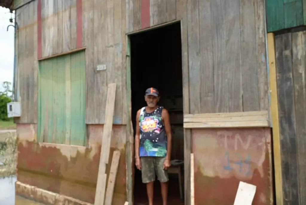 Seu Manoel Feitosa, de 79 anos, é um desses moradores que enfrentam quase todos os anos a cheia do Rio Acre.