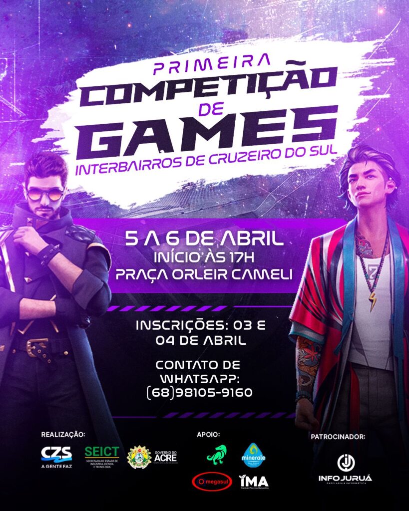 A Prefeitura de Cruzeiro do Sul através da secretaria de Desenvolvimento Econômico e Turismo e a Secretaria de Estado de Indústria, Ciência e Tecnologia vai realizar neste sábado, 5, e domingo, 6, a 1º Competição de Games Interbairros do município e contará com uma premiação total de R$ 1.500,00.