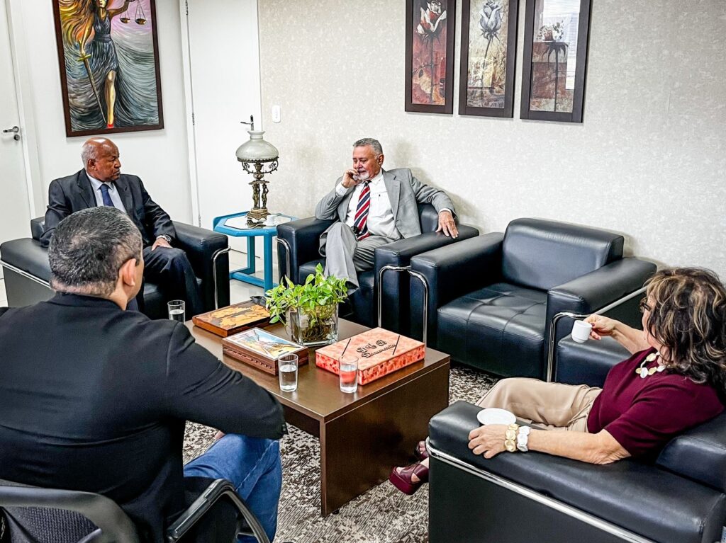 Em visita de cortesia ao Tribunal de Justiça do Estado do Acre, o deputado federal Coronel Ulysses foi recebido pela desembargadora Dra. Denise Bonfim, pelo juiz Dr. Samuel Martins Evangelista e pelo presidente da Câmara Criminal, Dr. Djalma. O encontro, de alto nível institucional, teve como foco o diálogo construtivo sobre temas sensíveis e de grande impacto para a segurança pública no país.