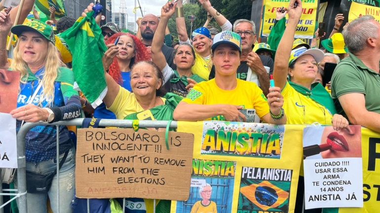 O discurso é o mesmo usado por todos os manifestantes. Cartazes com nomes de réus foram colocados nas grades, com os dizeres de “Anistia Já”. A defesa da anistia, para os bolsonaristas, incluiria pessoas como Mauro Cid e Daniel Silveira. Na lista ainda estavam Oswaldo Eustáquio e Allan dos Santos, ambos acusados de incentivar a tentativa de golpe.