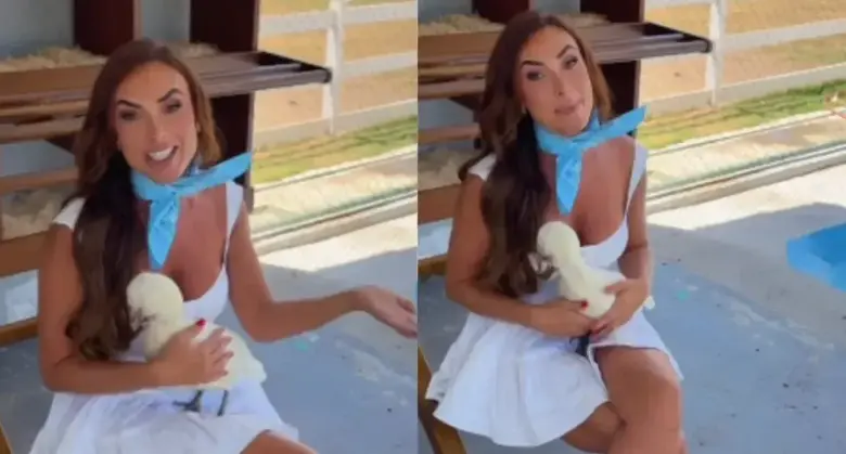 “Agora eu vou cuidar das minhas (galinhas) gêmeas, Giovanna Antonelli e da Regiane Alves. Patrícia Poeta é minha galinha branca mais alta. A Lore Impronta é a branquinha que não tem mancha nas costas”, completou Nicole Bahls, que também tem uma vaca chamada Ana Castela.
