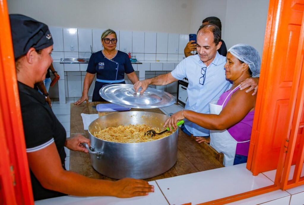 Nas escolas de ensino integral Rita de Cássia e Terezinha Saavedra, que funcionam em tempo integral os alunos recebem três refeições diárias, incluindo dois lanches e o almoço, proporcionando uma alimentação balanceada. Nesta terça-feira, 1º, o prefeito Zequinha Lima foi à Escola Terezinha Saavedra, onde acompanhou de perto a rotina dos estudantes e almoçou junto com as crianças e os funcionários.