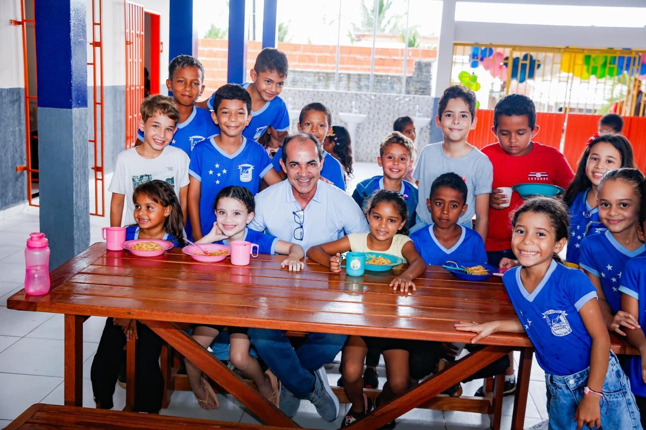 Nas escolas de ensino integral Rita de Cássia e Terezinha Saavedra, que funcionam em tempo integral os alunos recebem três refeições diárias, incluindo dois lanches e o almoço, proporcionando uma alimentação balanceada. Nesta terça-feira, 1º, o prefeito Zequinha Lima foi à Escola Terezinha Saavedra, onde acompanhou de perto a rotina dos estudantes e almoçou junto com as crianças e os funcionários.