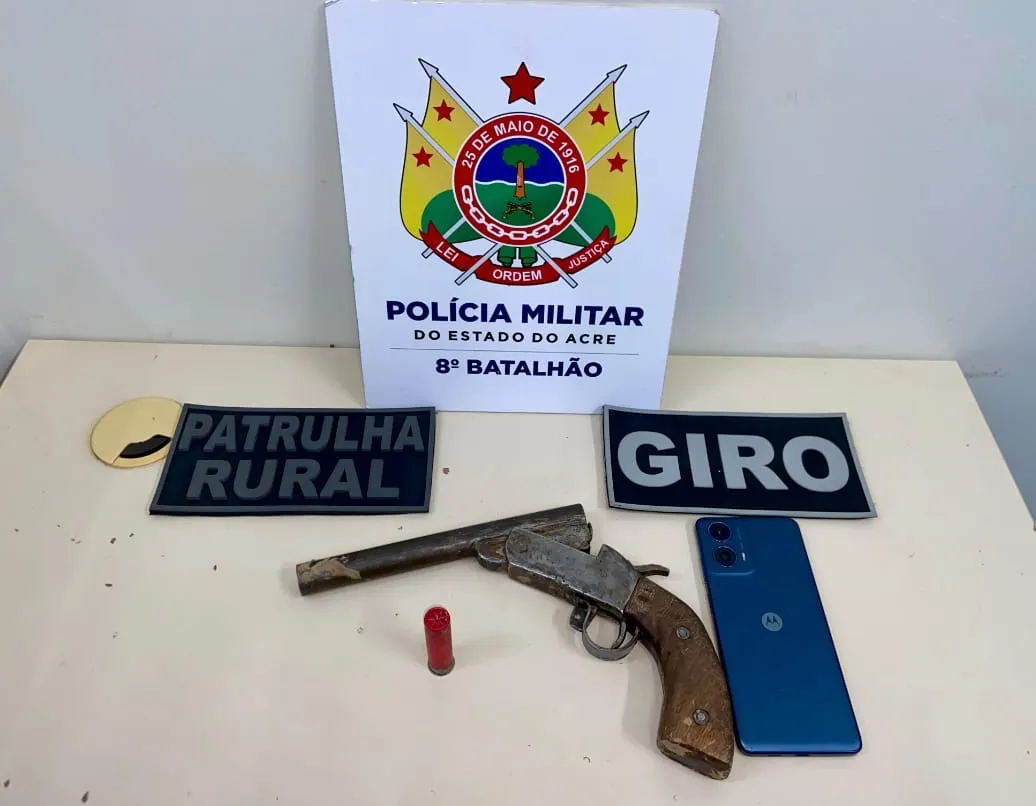 Após roubo em Sena Madureira, PM recupera celular, apreende arma de fogo e captura infratores