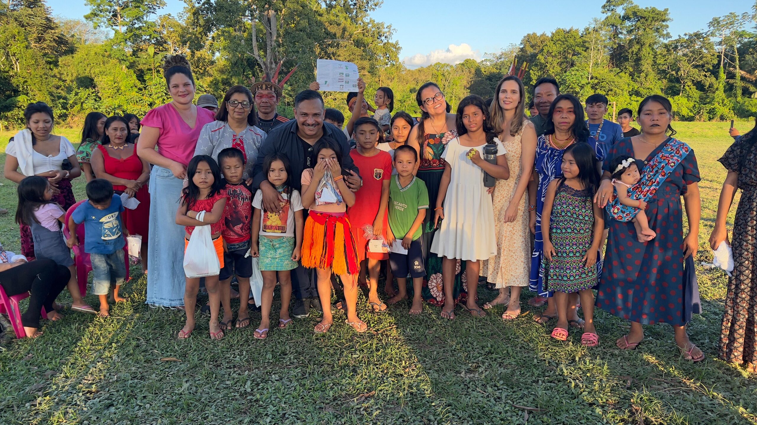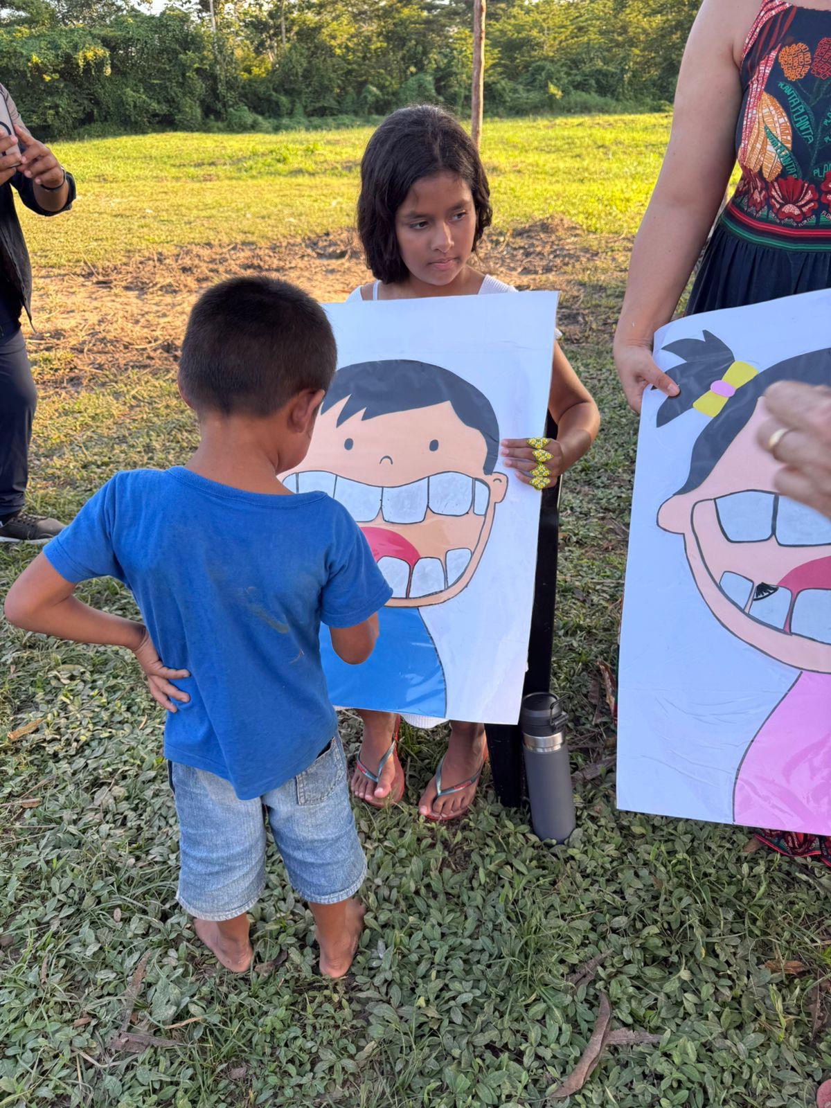 Em uma de suas atividades, o projeto visitou a comunidade indígena Kaxinawá, onde realizou uma ação especial voltada para crianças e jovens. A cirurgiã-dentista Dra. Priscila Valente participou do momento, levando orientações sobre saúde bucal, explicando como fazer a higienização correta e a importância do cuidado com os dentes.