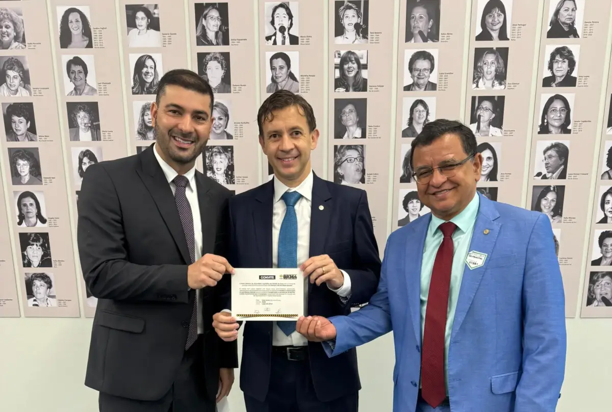 O presidente da Assembleia Legislativa do Acre (ALEAC), deputado estadual Nicolau Júnior, o primeiro-secretário da Mesa Diretora, deputado Luiz Gonzaga, o vice-presidente, deputado Pedro Longo e o deputado Edvaldo Magalhães estão em Brasília cumprindo agenda estratégica e necessária para o povo do Acre. Eles vieram convidar pessoalmente os deputados federais do Acre para integrarem a caravana “BR-364 Pede Socorro”, uma mobilização que visa chamar a atenção das autoridades do governo federal para a urgente necessidade de reconstrução da principal rodovia do estado.