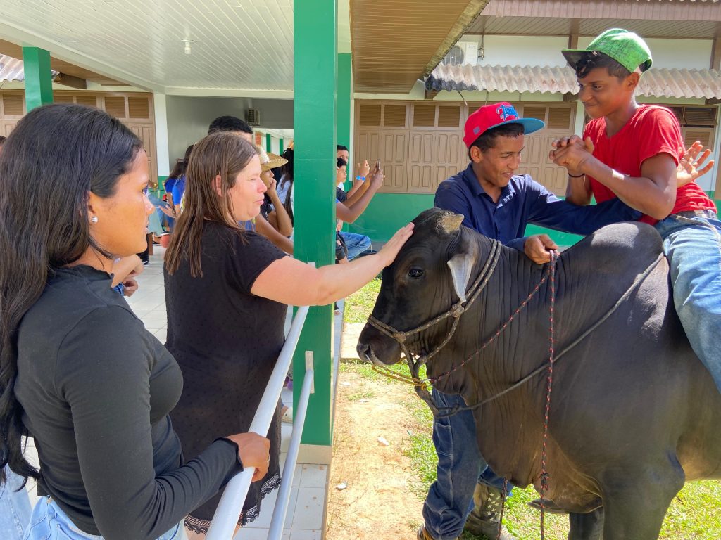 Além disso, para Erik Silva, um dos participantes do Clube do Claude, a iniciativa representa uma forma de trazer a realidade do campo para dentro da escola. “Nosso clube é voltado para o agro. A gente quis trazer isso pra dentro da escola, mostrar um pouco da nossa realidade. A gente organizou com a ajuda dos colegas e decidimos trazer os bois, falar sobre eles, fazer brincadeiras, atividades ligadas ao campo”, afirmou.