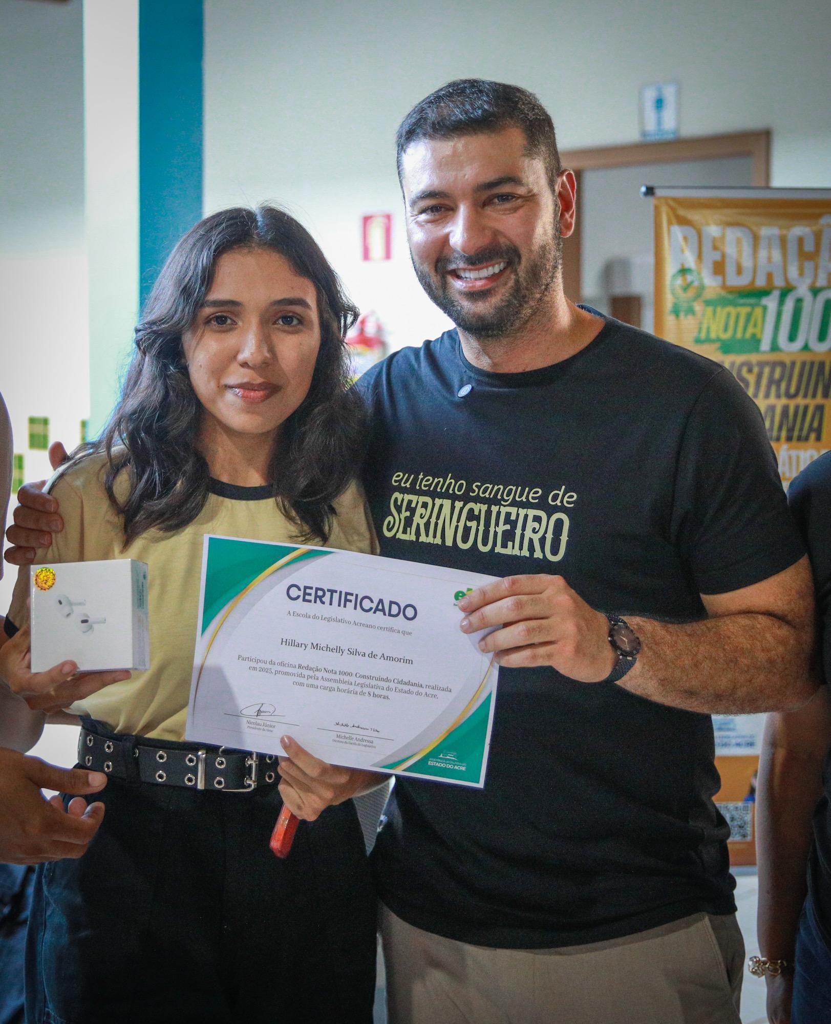 Mais de 100 alunos do terceiro ano, do Ensino Médio, da Escola Estadual Leôncio de Carvalho, foram certificados com o curso Redação Nota Mil, ofertado pela Assembleia Legislativa do Estado do Acre (ALEAC). Foram dois dias de aprendizado com a apresentação de técnicas específicas para que os alunos aprendessem e assim possam usar na redação do Exame Nacional do Ensino Médio (ENEM).