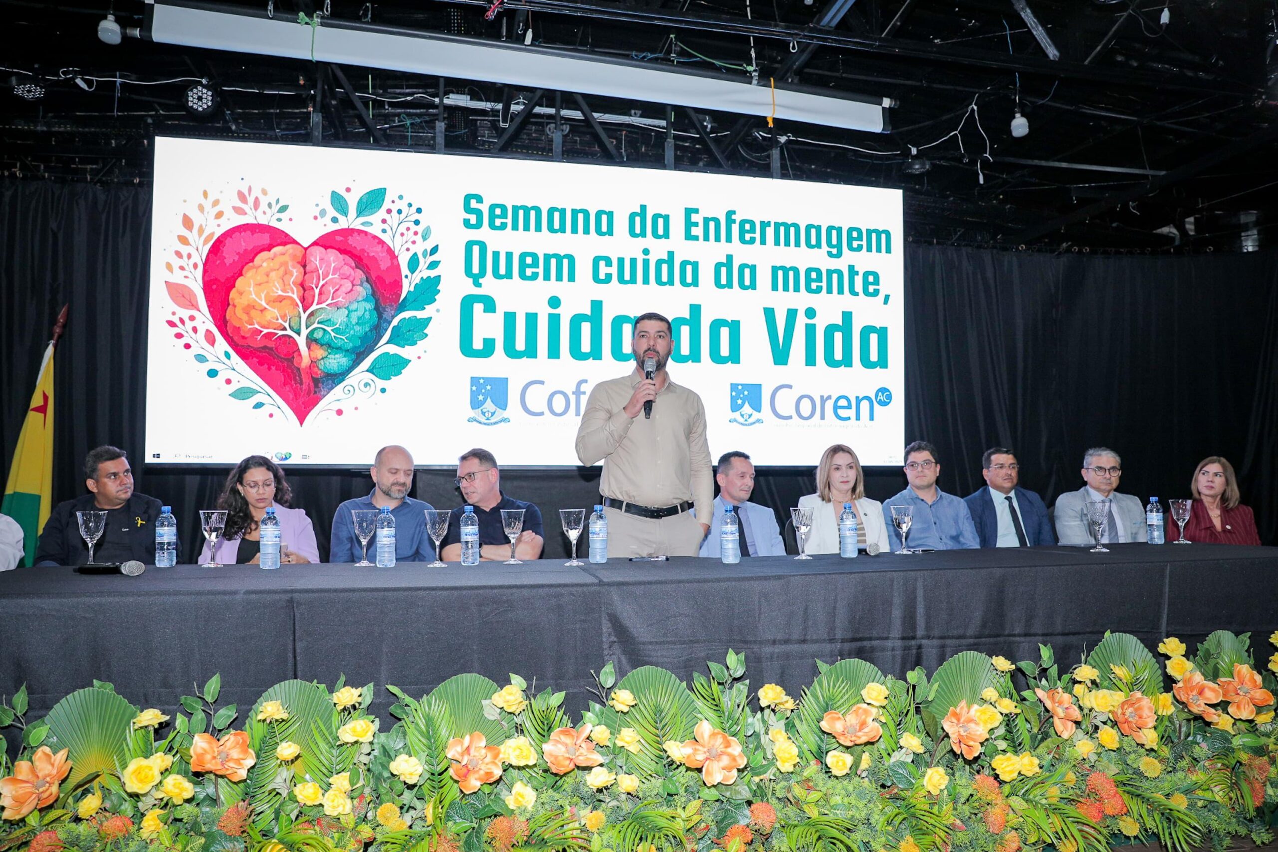 O presidente da Assembleia Legislativa do Acre (ALEAC), deputado estadual Nicolau Júnior prestigiou a abertura da Semana de Enfermagem do Acre, na noite desta segunda-feira, 12. Este ano os profissionais vão discutir a saúde mental dos enfermeiros, com o tema “Saúde mental e o bem estar do profissional de enfermagem”. A semana é organizada anualmente, no período em que se comemora o Dia do Enfermeiro, pelo Conselho Regional de Enfermagem (COREN).