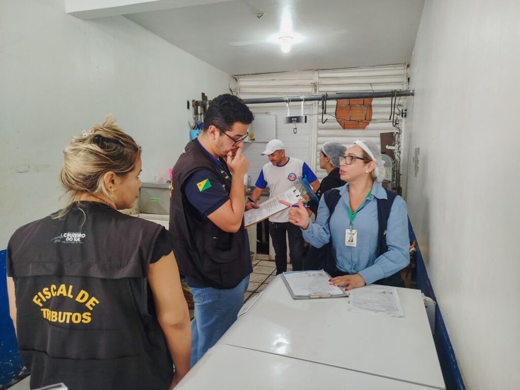 Nesta terça-feira, 27, a Prefeitura de Cruzeiro do Sul realizou uma ação conjunta com os órgãos de fiscalização do município nos açougues e casas de carnes localizados no Centro Comercial da cidade. A iniciativa envolveu a Vigilância Sanitária, Secretaria de Clima, Meio Ambiente e Sustentabilidade, Secretaria de Tributos e a Polícia Ambiental, com o objetivo de orientar os proprietários e funcionários desses estabelecimentos quanto às boas práticas de manipulação da carne e o descarte correto dos resíduos, especialmente ossos.