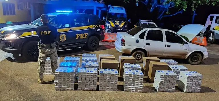 Ao receber ordem de parada, o motorista tentou fugir, mas foi rapidamente interceptado pelos policiais. Durante a vistoria, os agentes encontraram dezenas de caixas contendo cigarros da marca “Point”, sem comprovação legal de entrada no Brasil, configurando o crime de contrabando.