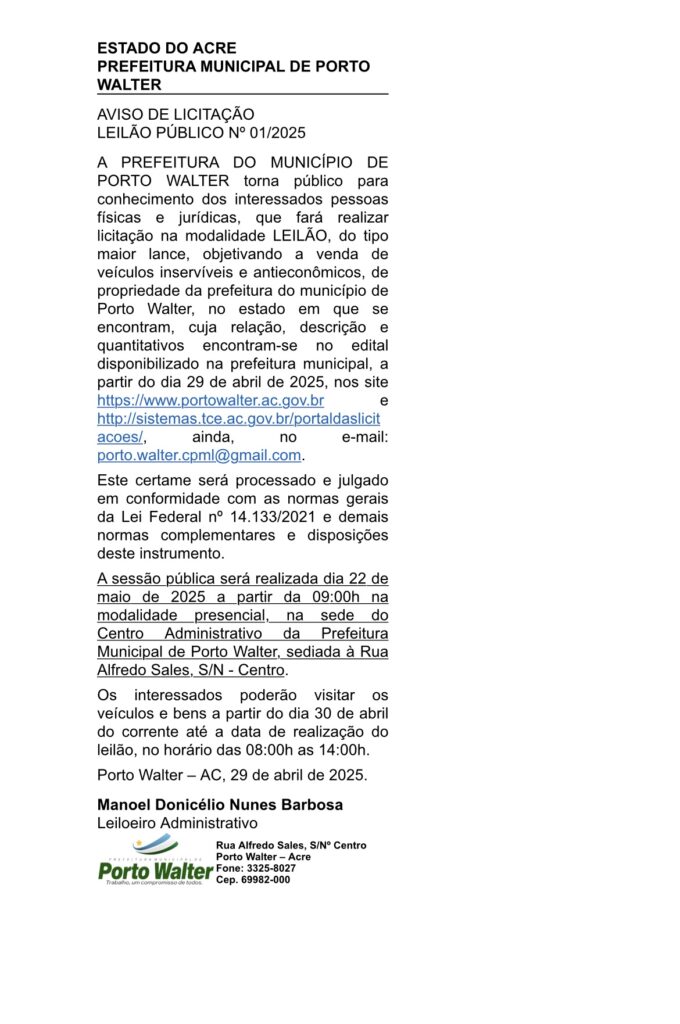 Publicação – Aviso de Licitação
