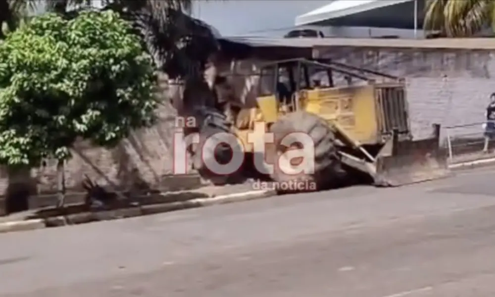 Um trator se desprendeu de uma carreta e invadiu o terreno de uma residência, na manhã desta segunda-feira, 05, no bairro do Bosque, em Rio Branco (AC). Câmeras de segurança registraram o momento em que o equipamento, desgovernado, cai na via.
