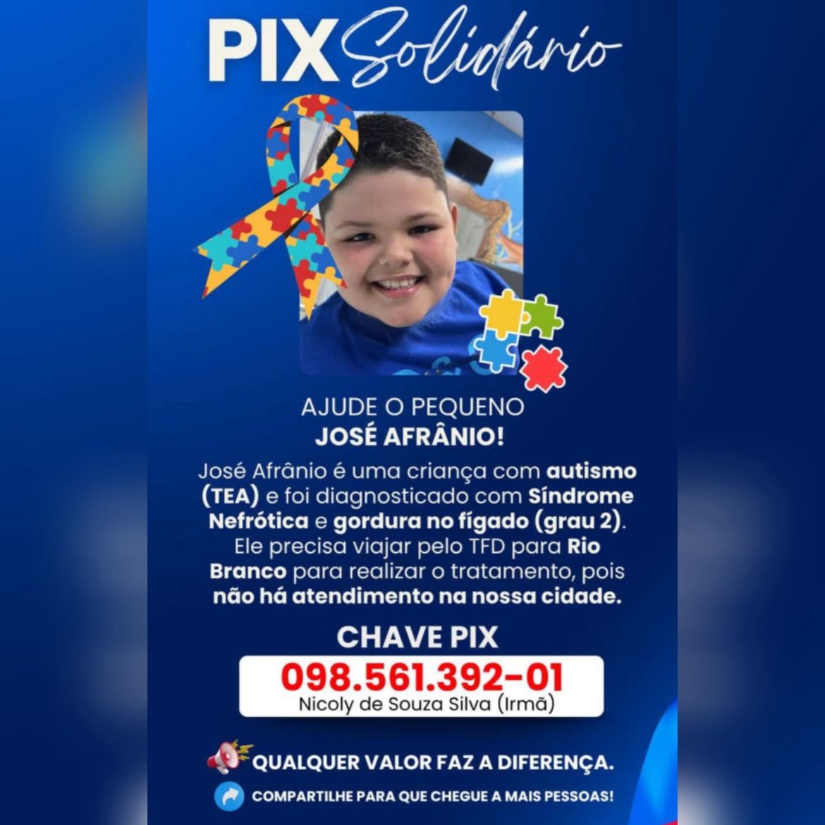 A família reforça que qualquer valor faz a diferença e pede que a mensagem seja compartilhada para alcançar o maior número de pessoas possível. “Estamos nos mobilizando porque ele precisa continuar o tratamento com urgência. José é um menino cheio de vida, e com a ajuda de todos, vamos garantir o cuidado que ele merece”, afirma a mãe.