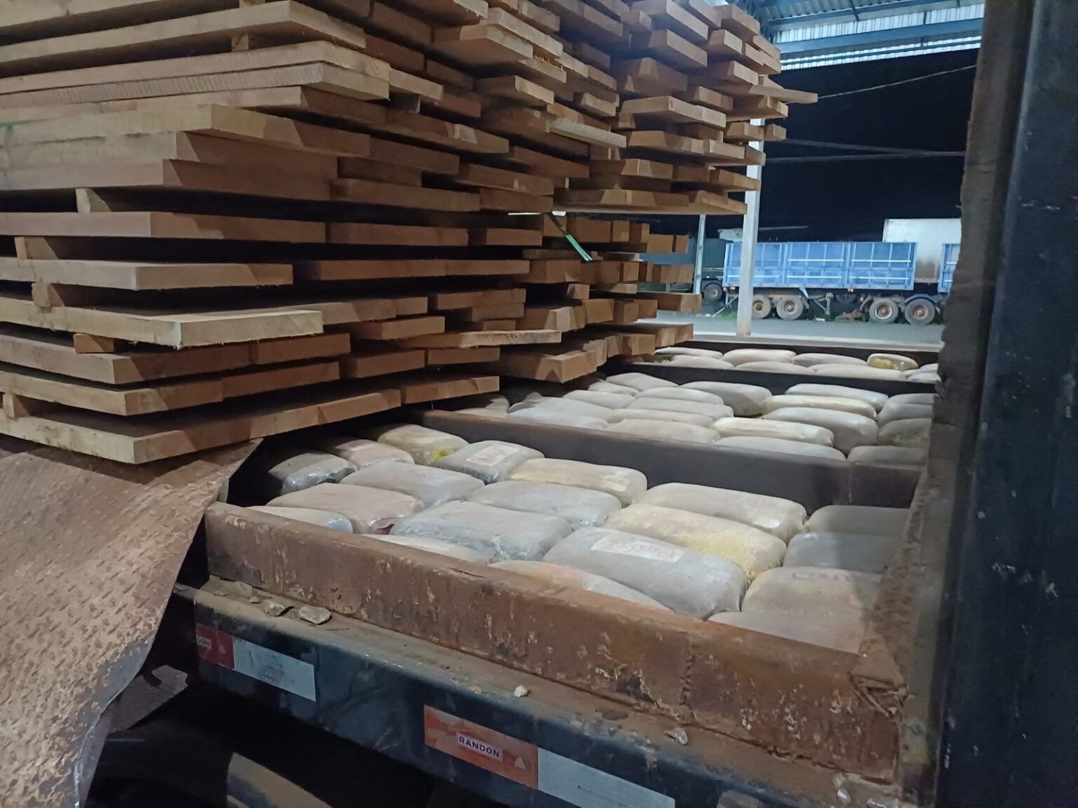 Durante a abordagem, os policiais encontraram 254,92 kg de skunk (um tipo mais potente de maconha), 7,86 kg de pasta-base de cocaína e três armas de fogo. O material ilícito estava cuidadosamente ocultado sob a carga legal e só foi descoberto após uma inspeção minuciosa.