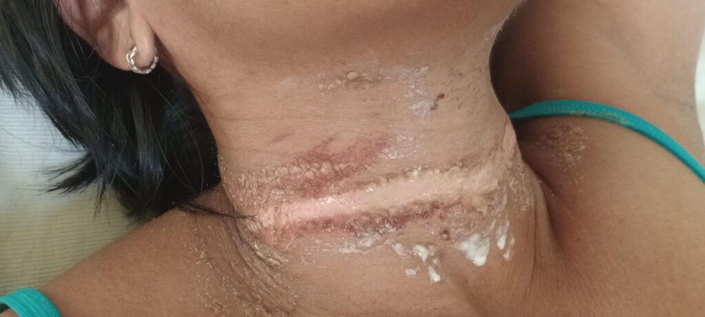 Ela foi socorrida, encaminhada ao hospital, medicada e, após avaliação, liberada. A vítima sofreu ferimentos no pescoço, mas segue bem.