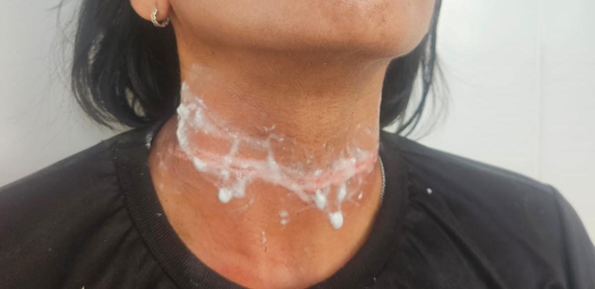 Ela foi socorrida, encaminhada ao hospital, medicada e, após avaliação, liberada. A vítima sofreu ferimentos no pescoço, mas segue bem.