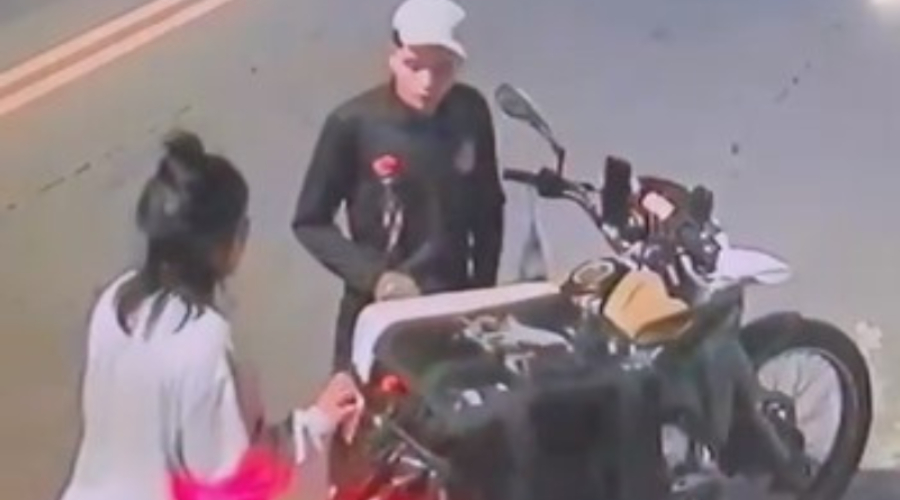 Câmeras de vigilância capturaram o momento em que o homem e a mulher surpreenderam o trabalhador. Com uma arma em mãos, a dupla agiu de forma rápida e audaciosa, impondo medo à vítima.