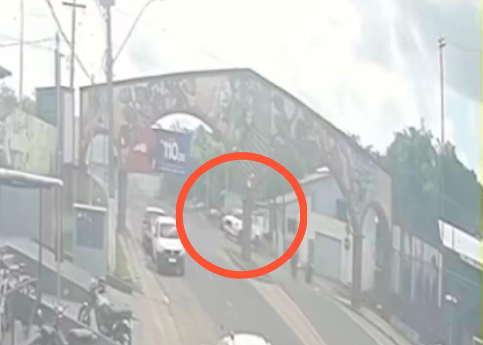 Imagens de uma câmera de segurança, registraram o exato momento da colisão entre uma caminhonete e uma motocicleta, na Avenida Coronel Mâncio Lima, no início da tarde desta terça-feira, 10.