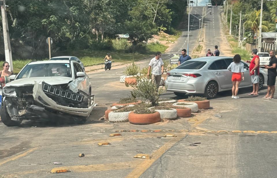Desta vez, a ocorrência se deu em uma rotatória do bairro AABB. A colisão aconteceu entre dois veículos, (um modelo Jeep; o outro, modelo Corolla) que trafegavam no local.
