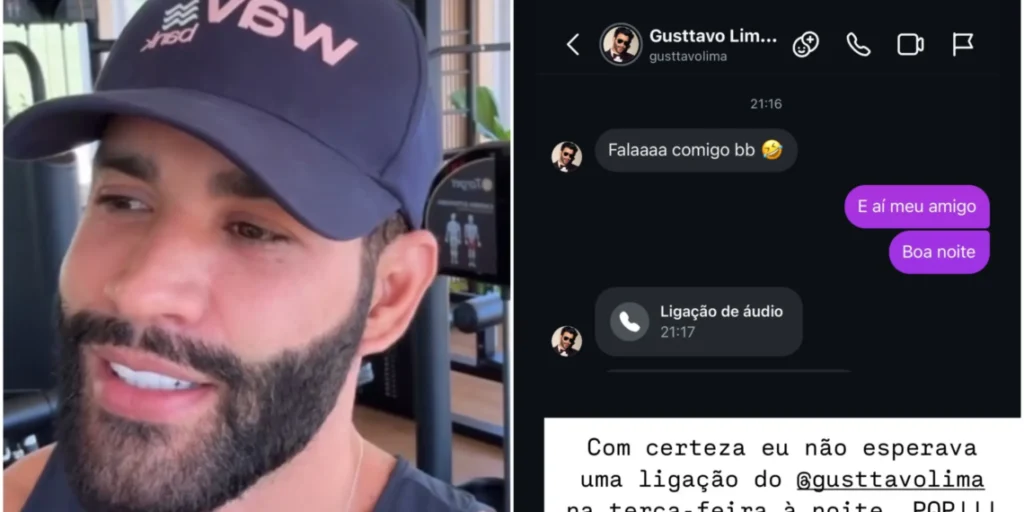 “Com certeza eu não esperava uma ligação do Gusttavo Lima na terça-feira, à noite”, celebrou, postando prints que comprovam o contato. Lucas ainda informou que o contato se deu após ele fazer um video ao lado da esposa, referindo-se a mensagens enviadas ao artista via rede social desde 2019. Nenhuma tinha sido respondida, pelo menos, até a terça-feira.