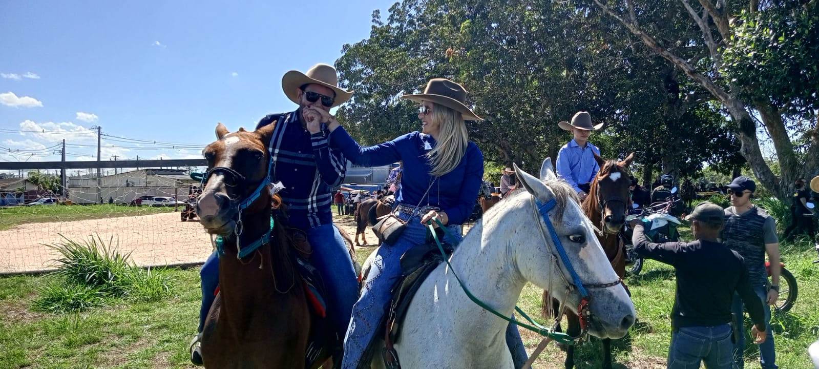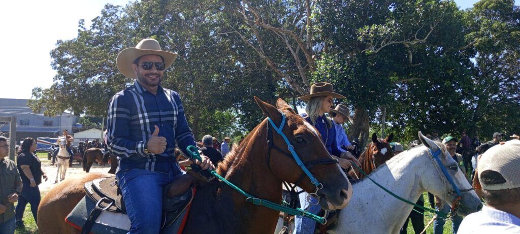 O governador do Acre, Gladson Cameli, participou na manhã deste sábado (5) da tradicional cavalgada da Expoacre Juruá, em Cruzeiro do Sul. Ele estava acompanhado da namorada e caminhou entre os participantes do evento, que marca o início oficial da programação do fim de semana na feira.