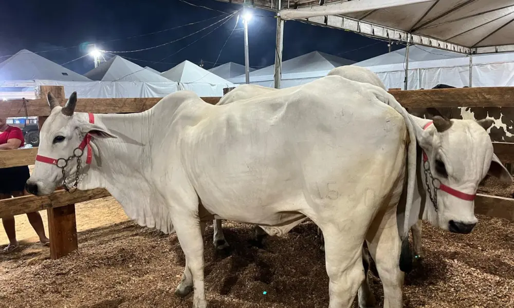 Durante a Expoacre Juruá, em Cruzeiro do Sul, um dos destaques entre as atrações é a vaca nelore branca de nome Maré, que impressiona não só pela aparência, mas principalmente pelo valor: R$ 150 mil. Ao lado dela, seu bezerro também desperta curiosidade, com valor estimado em R$ 15 mil.