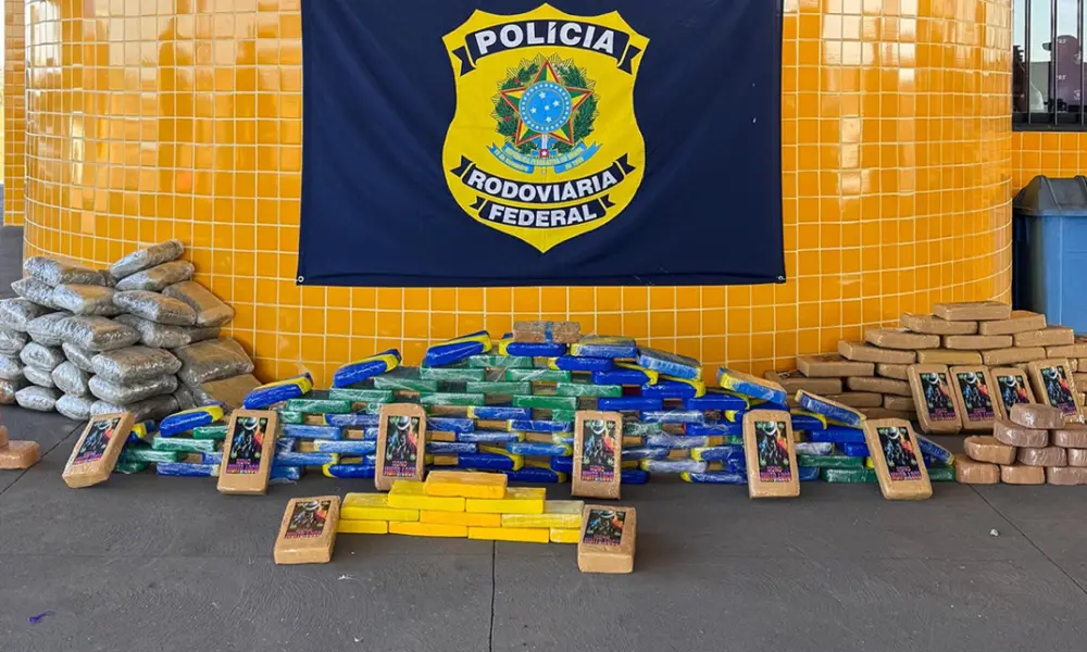Durante a inspeção, ao removerem a lona que cobria a carroceria, os policiais localizaram diversas caixas de papelão escondidas sobre a madeira. Dentro das embalagens estavam 204 tabletes de entorpecentes, totalizando 209,75 kg: