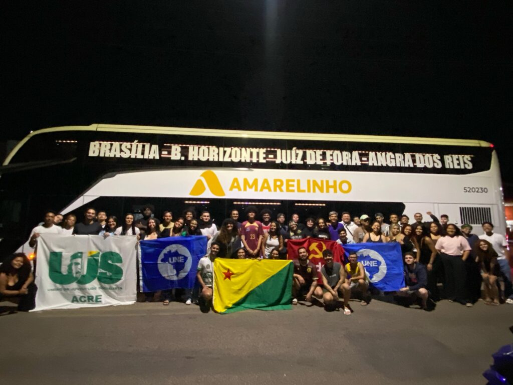 “São todos do Acre. Pessoas de Rio Branco, de Cruzeiro do Sul, Mâncio Lima, de Rodrigues Alves, de Tarauacá, Bujari e Sena Madureira. A Ufac, após articulação da UJS com a Reitoria e conseguimos um ônibus”, disse Lucas Souza, secretário de Formação, da União da Juventude Socialista.