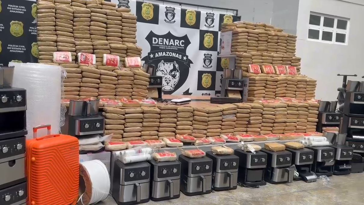 No local, a equipe policial encontrou dezenas de air fryers, dentro das quais eram escondidos, em média, cerca de quatro quilos de maconha tipo skunk, embalados a vácuo para dificultar a detecção. Em seguida, os policiais se deslocaram até o apartamento de Ingrid, no Planalto, e, posteriormente, até a residência na avenida Torquato Tapajós. Nesses locais, foram encontrados mais entorpecentes, além de materiais como plástico bolha, caixas de papelão, fitas adesivas e máquinas de embalo a vácuo.