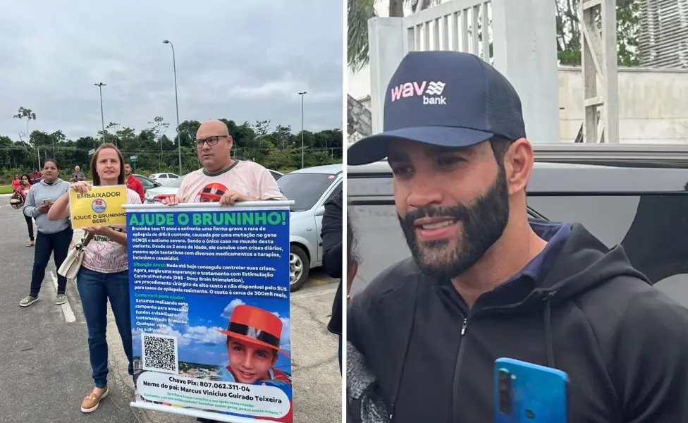Na saída do aeroporto, ele parou para ouvir o pai e um grupo da Escola São José, de Cruzeiro do Sul, onde Bruno Vinícius Troiani Teixeira, de 11 anos, estuda. O menino é portador de uma mutação genética rara, associada ao gene KCNQ5, tem o espectro autista severo e também epilepsia incontrolável, que provoca crises e convulsões diárias. A cirurgia para o implante de estimulação cerebral, que pode solucionar o problema da epilepsia custa em torno de R$ 300 mil e o plano de saúde da Unimed não cobre o tratamento necessário.