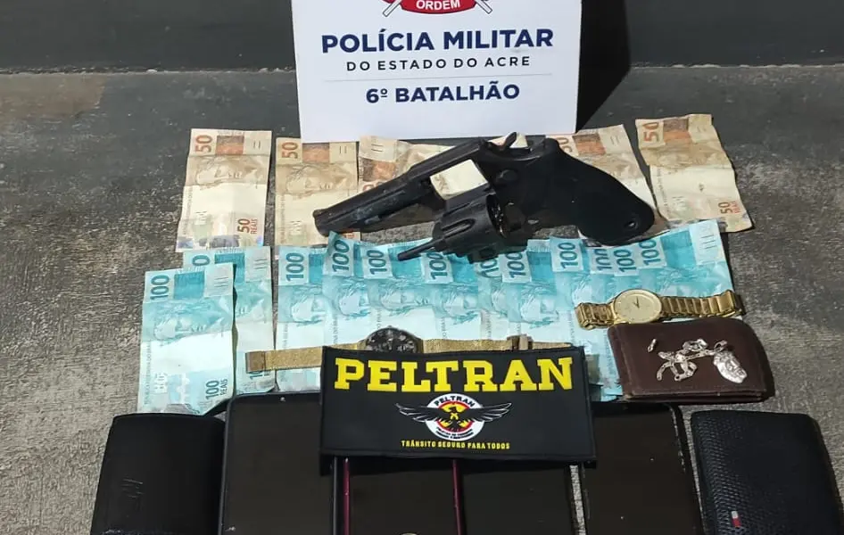 A arma do criminoso foi apreendida, junto com parte dos itens roubados e uma motocicleta Honda CG 160, que pertenceria a um dos envolvidos. Entre os objetos recuperados estavam R$ 1.450 em dinheiro, celulares, carteiras e joias, todos entregues à delegacia para serem devolvidos às vítimas.