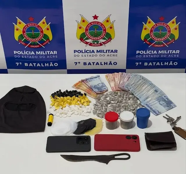 Para reforçar a ação, o Canil do 7º Batalhão foi acionado e localizou mais drogas enterradas no quintal da residência. Ao todo, dezenas de embalagens de entorpecentes, prontas para serem vendidas nas chamadas “bocadas”, foram apreendidas. Além disso, os policiais recolheram celulares que, segundo as investigações preliminares, seriam utilizados para a comunicação entre membros de organizações criminosas. Os aparelhos serão encaminhados à perícia técnica, com o objetivo de identificar outros envolvidos, incluindo possíveis clientes.