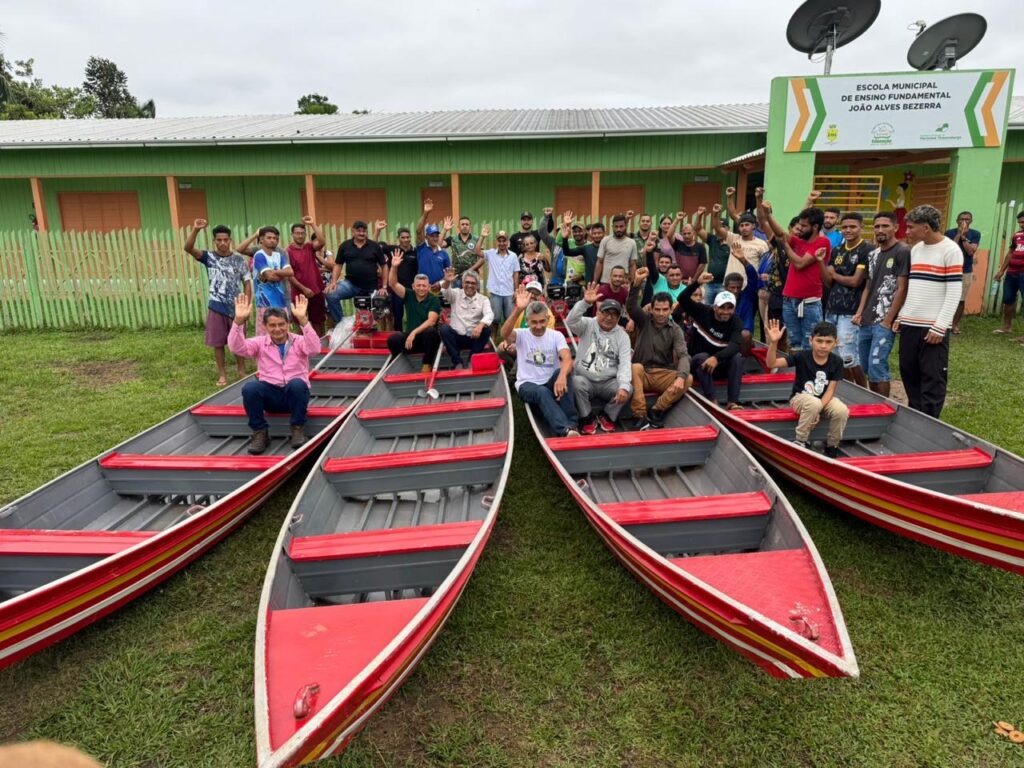 “Aqui estamos entregando barcos cobertos para proteger nas viagens às comunidades, tanto da Associação dos Moradores da Reserva Extrativista do Alto Juruá quanto do Sindicato dos Trabalhadores Rurais de Marechal Thaumaturgo. Vão ser instrumentos de visita às comunidades”, disse Edvaldo Magalhães.