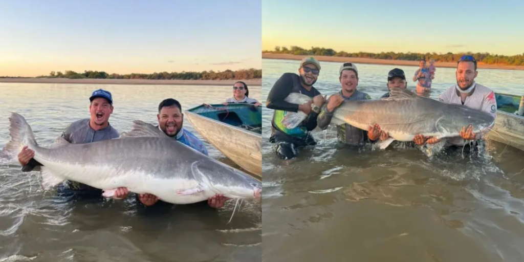 Segundo Caiuã, o peixe foi fisgado por volta das 17h, e em seguida o guia passou cerca de 50 minutos “brigando” com o piraíba para conseguir tirar uma foto. “Foi tirado na melhor hora possível, pegando um belo pôr do sol que o Rio Araguaia sempre nos propõe”, afirmou.