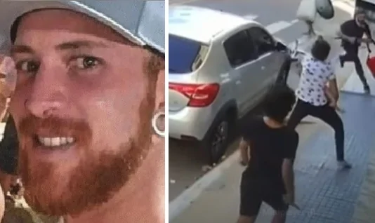 O fato foi filmado por câmeras de videomonitoramento que mostram o momento em que Felipe está subindo em uma bicicleta e, aparentemente deixando o local, quando de repente ele volta e parte pra cima da companheira e da sogra. Neste momento, a mulher de 57 anos desfere um golpe no peito do homem, que cai alguns metros a frente.