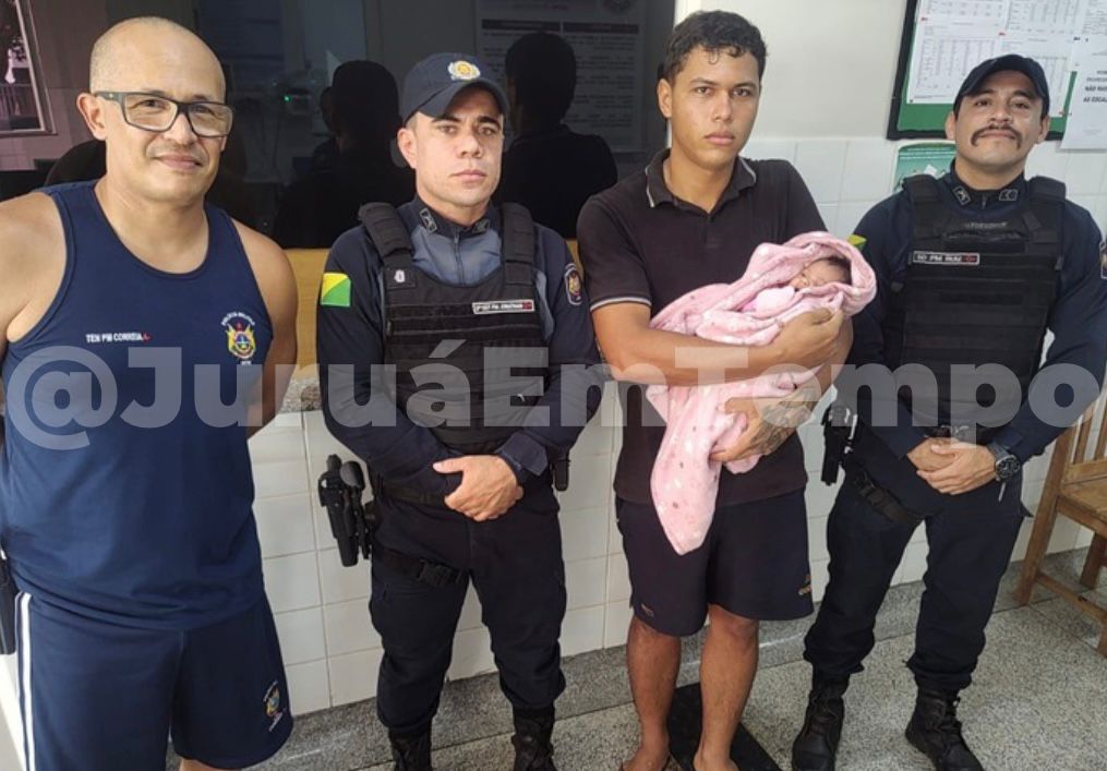 Na manhã desta quinta-feira (14), uma ocorrência dramática mobilizou a Polícia Militar de Acrelândia e terminou com um final feliz graças à atuação ágil e precisa dos agentes. Um bebê recém-nascido, a pequena Emilly, engasgou em sua residência localizada no ramal Campo Novo, linha 7, e teve sua vida salva por policiais militares após os pais não conseguirem contato com o Serviço de Atendimento Móvel de Urgência (SAMU).