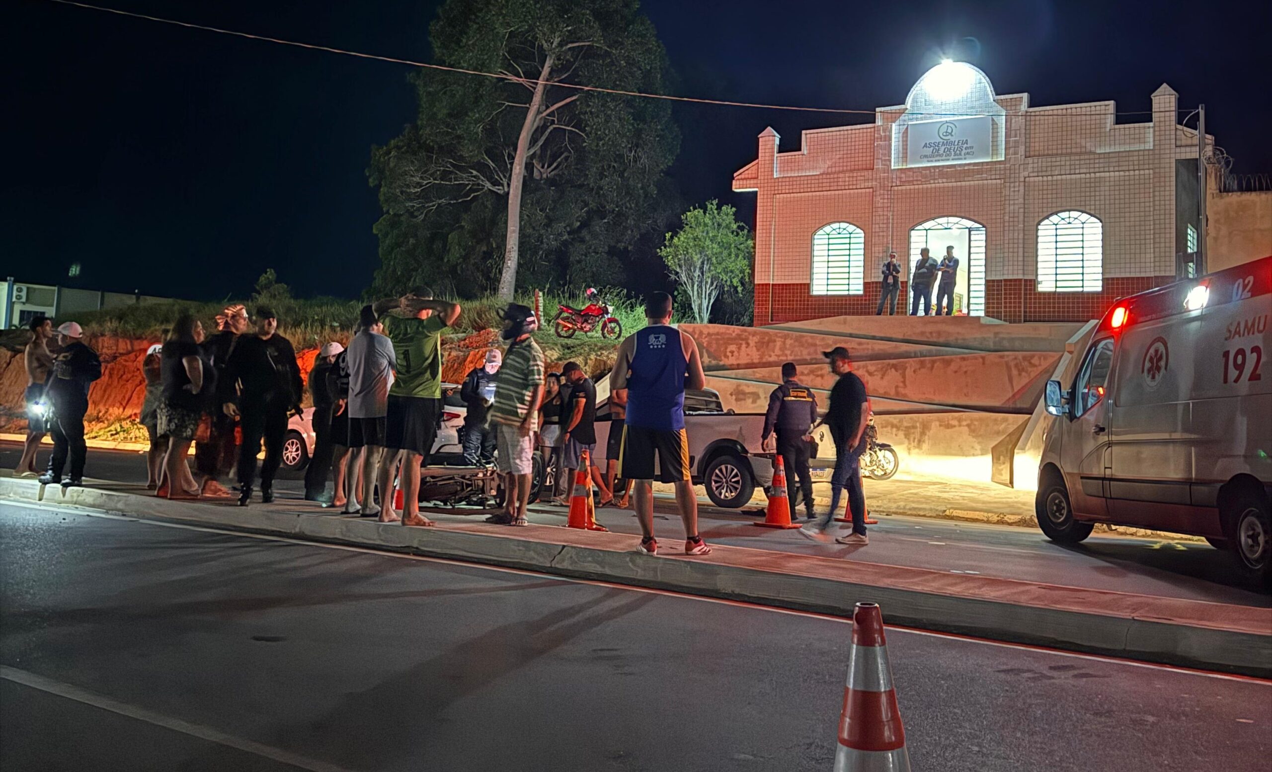 Na noite desta sexta-feira, 22, um acidente envolvendo uma motocicleta e um carro foi registrado na rodovia AC-405, em Cruzeiro do Sul.