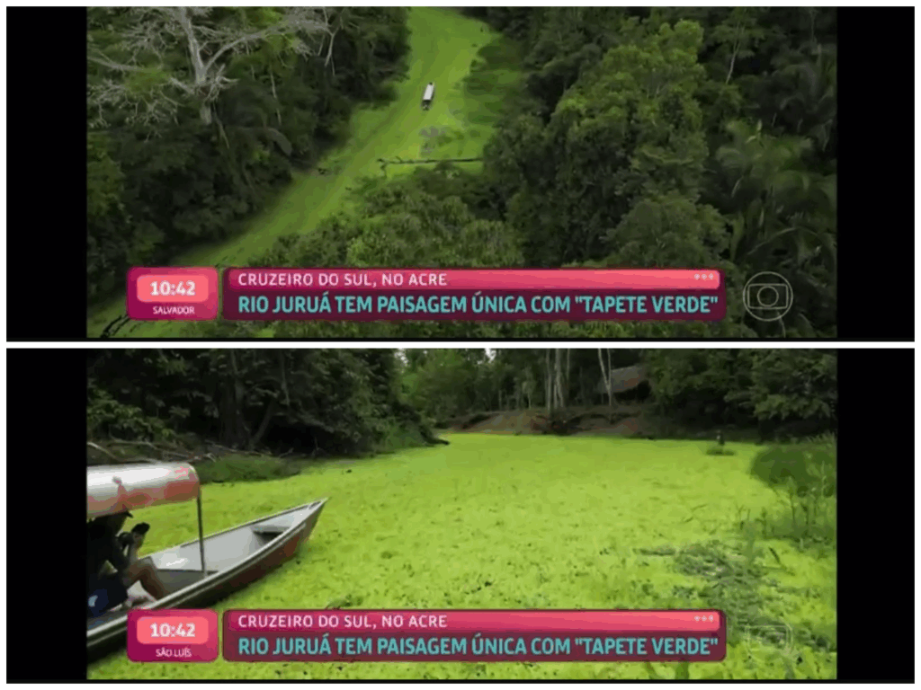 “As imagens que abriram o programa de hoje são de Cruzeiro do Sul. Você viu que bonitas que são? É maravilhoso, né? Olha esse verdão. No Acre. Esse é o Rio Juruá.”