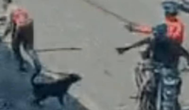No vídeo, é possível observar quando os criminosos chegam em uma motocileta, ao lado de uma concessionária e o garupa atira contra o alvo. Porém, a arma acabou falhando e cachorro, conhecido como “Dudu”, avançou sobre o bandido.