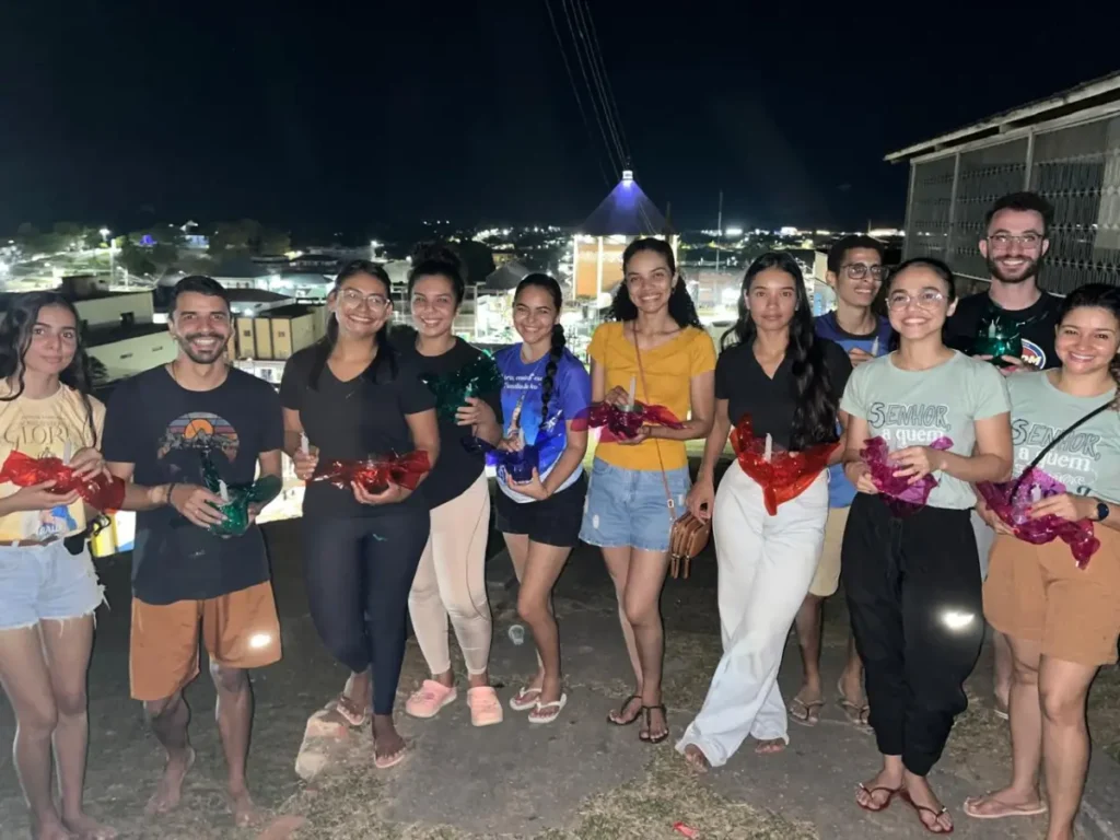 As “lanternas”, com base de garrafa pet, papel celofane, areia e vela foram feitas pelas comunidades da Diocese e colocadas no local pelos jovens de grupos de oração das Paróquias da Gloria Aparecida e Rosário.