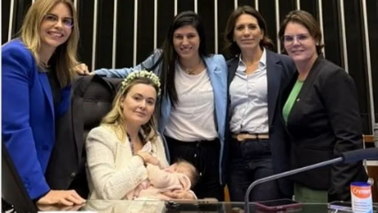 A parlamentar se uniu à obstrução, sentou na cadeira do presidente da Casa, Hugo Motta (Republicanos-PB) com a bebê no colo e publicou vídeos do momento nas redes sociais. Para o petista, a ação pode ser enquadrada como exposição de criança a situação de risco.